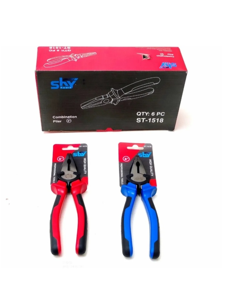انبر دست اسکای مدل ST-1518 با سایز 8 اینچ، ابزاری برای کارهای صنعتی و نیمه صنعتی است. این انبر دارای فکهای فولادی مقاوم با روکش پلاستیک ضد لغزش برای دسته است. جنس بدنه از آلیاژ کروم-وانادیوم بوده و وزن آن حدود 300 گرم است.